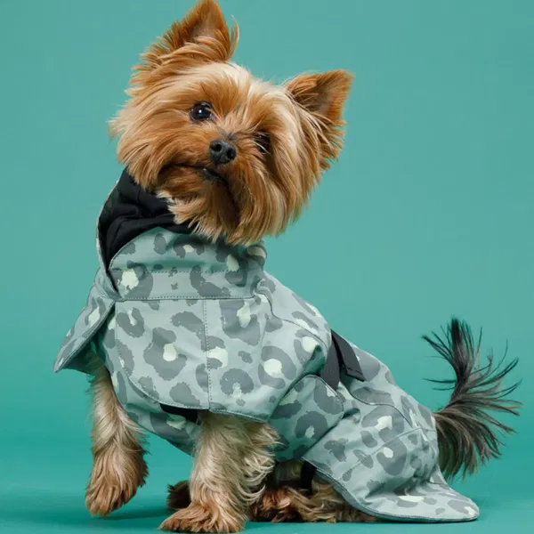 PAIKKA Reflektierender Wintermantel für Hunde im wilden Leoparden-Grün